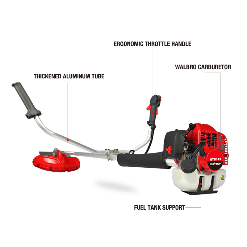 The NEWTOP Brush Cutter NTB143 delivers reliable power with a focus on user comfort and efficiency. Its lightweight body, smooth power output, and easy-start system make it ideal for trimming grass, weeds, and light brush with minimal effort. Designed for consistent performance and simple maintenance, it offers dependable cutting strength for gardens, parks, and small fields. The NTB143 stands out for its smooth handling, fuel efficiency, and durability—making outdoor work easier and faster.