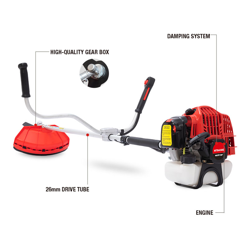 The NEWTOP Brush Cutter NTB430E is a compact yet capable tool that delivers dependable power for everyday trimming and maintenance. Driven by a precision-tuned 42.7CC 2-stroke petrol engine, it offers smooth acceleration and stable cutting performance with reduced vibration. Lightweight, responsive, and easy to handle, it’s the go-to choice for home users and professional gardeners alike.