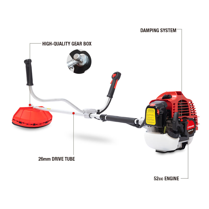 Engineered for professional performance, the NEWTOP NTB520B combines power, precision, and comfort in one robust machine. Its high-quality gearbox works seamlessly with the blade, providing efficient torque for cutting through tough vegetation and branches. The 26mm solid steel drive shaft transfers power smoothly from the engine to the cutting head, ensuring reliability under load.