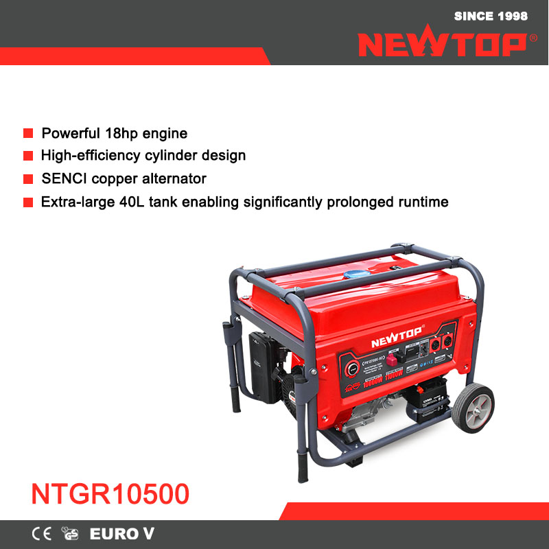 As a higher-capacity model in the NEWTOP lineup, the NTGR10500 outputs a powerful 10 kW to accommodate larger electrical loads. Its heavy-duty engine construction, forged crankshaft, and copper-winding alternator contribute to stable long-term performance. Designed for extended use with a 40 L tank, this generator supports intensive industrial operations, large commercial facilities, and high-demand emergency power situations.