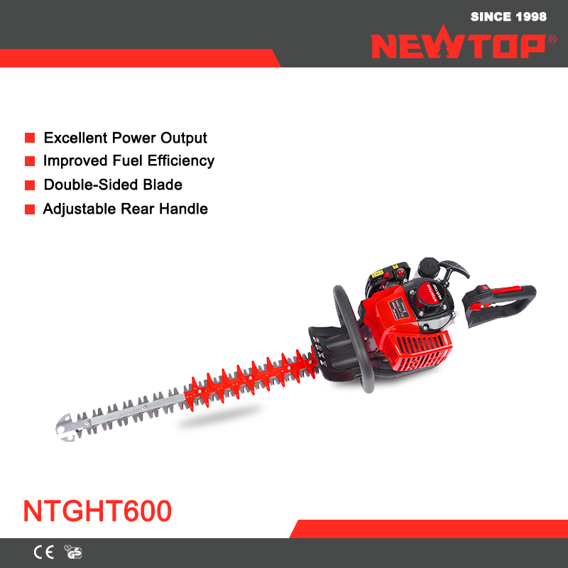 The NEWTOP NTGHT600 Gasoline Hedge Trimmer combines strong power with excellent fuel efficiency. Its 25.4cc engine delivers stable cutting performance, while the precision-balanced structure ensures smooth operation and reduced vibration. Designed with efficiency and comfort in mind, it makes hedge trimming effortless and precise for all types of garden work.