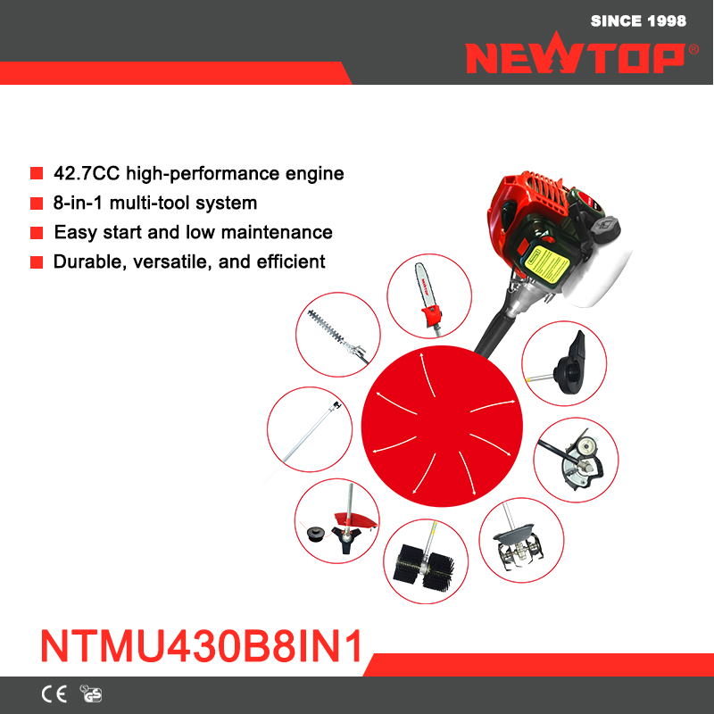 The NEWTOP NTMU430B8IN1 is the ultimate multi-function gardening tool, combining eight essential attachments in one powerful and reliable unit. Easy to start, simple to maintain, and built for long-term use, it’s the perfect all-in-one solution for professionals and home gardeners who want versatility without compromise.