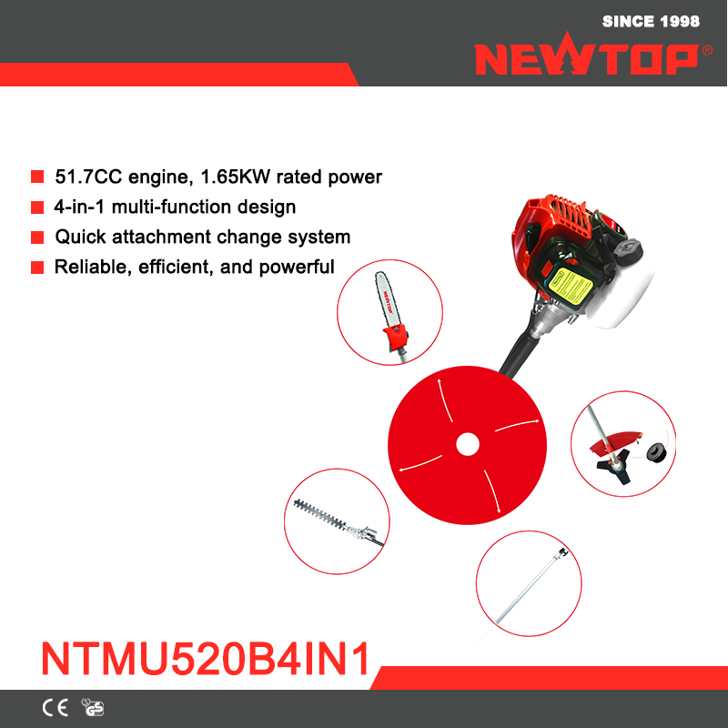 Each attachment is crafted from high-strength materials for durability, while the ergonomic design minimizes fatigue during long operation hours. From trimming lawn edges to pruning tall branches, the NTMU520B4IN1 adapts instantly to your needs, providing professional-grade results in every application.
