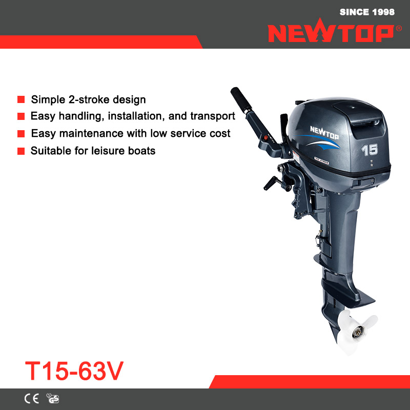 Built around a simple 2-stroke layout, the NEWTOP Outboard Motor T15-63V pairs quick acceleration with dependable day-to-day running. Its lightweight build keeps installation and transport easy, while corrosion-resistant hardware and low-cost servicing make it a practical choice for leisure boats, personal fishing craft, and small transport duties.