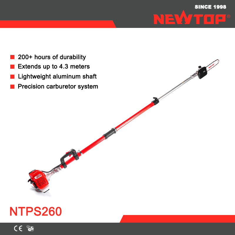 Featuring top-class manetic motor and carburetor, the NEWTOP NTPS260 gas-powered pole saw pruner ofers over 200 hours of durabi, with no qually feedback in he marketWith our longest extension, this gasoline telescopic pole chain saw can efortlessly reach heights of up to 4.3 meters, making it an ideal tree pruner.