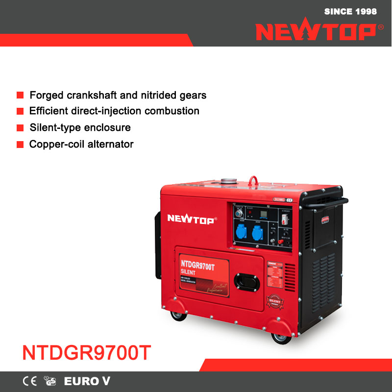 For users who require maximum power in this generator series, the NEWTOP Diesel Generator NTDGR9700T offers strong, stable output suitable for industrial-grade tools, commercial backup systems, and intensive job-site applications. Its durable build coordinates with high efficiency to support long daily runtimes.