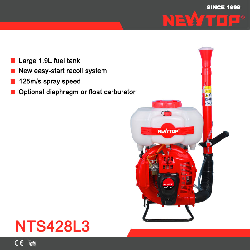Users can choose between diaphragm or float-type carburetors, providing flexibility for different fuel conditions and regional preferences. Built for strength, precision, and endurance, the NEWTOP NTS428L3 mist blower stands out among professional garden machinery suppliers and outdoor power equipment dealers seeking reliable, high-performance spraying solutions.