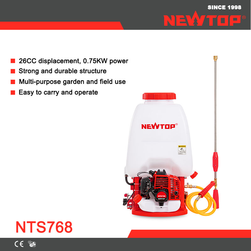 The NEWTOP Sprayer NTS768 delivers reliable performance for garden and agricultural use. Its compact, durable design ensures long-lasting operation, while the powerful 26CC engine provides consistent pressure for efficient spraying. Ideal for pest control, weed management, and liquid fertilization, it’s a dependable tool for professionals and home users alike.