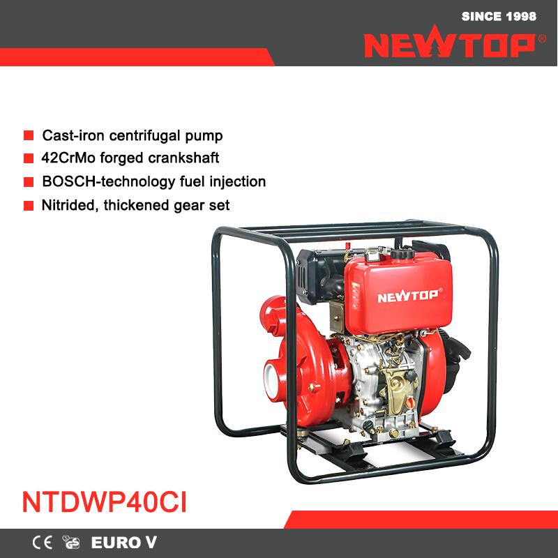Built for significant water-movement applications, the NEWTOP NTDWP40CI utilizes a robust cast-iron pump and a high-torque diesel engine to deliver strong flow while maintaining stable lift performance. It is ideal for large-area irrigation and emergency pumping.