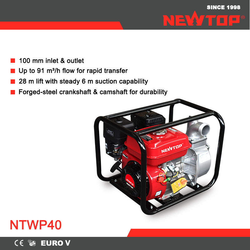 Designed to function reliably between -5 °C and 45 °C and tested in extended high-intensity conditions, the NEWTOP NTWP40 is suitable for agricultural irrigation, firefighting support, flood control, daily water supply, and marine-related pumping work. Its dependable build also makes it an excellent choice for gasoline water pump suppliers, outdoor power equipment dealers, and garden machinery suppliers seeking a durable and versatile pumping solution.