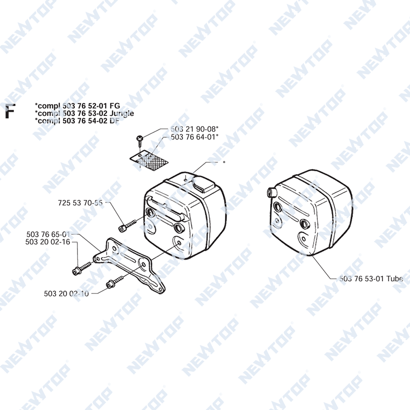 | F2 | 503 76 53-02 | Muffler Assy Jungle |