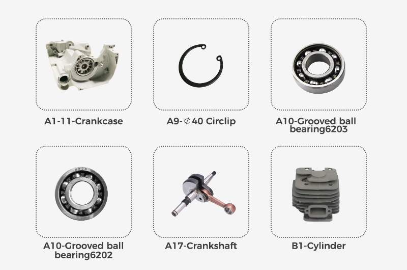 The NEWTOP MS381 spare parts set is designed to maintain optimal cutting performance and mechanical reliability under demanding workloads. Every part, from the crankshaft to the cylinder, is crafted with 20CrMoTi alloy steel and processed using precise CNC and heat treatment technology to ensure exceptional endurance and balance. The cylinder’s ceramic and chrome-plating options allow users to tailor durability and cooling efficiency based on local working conditions.