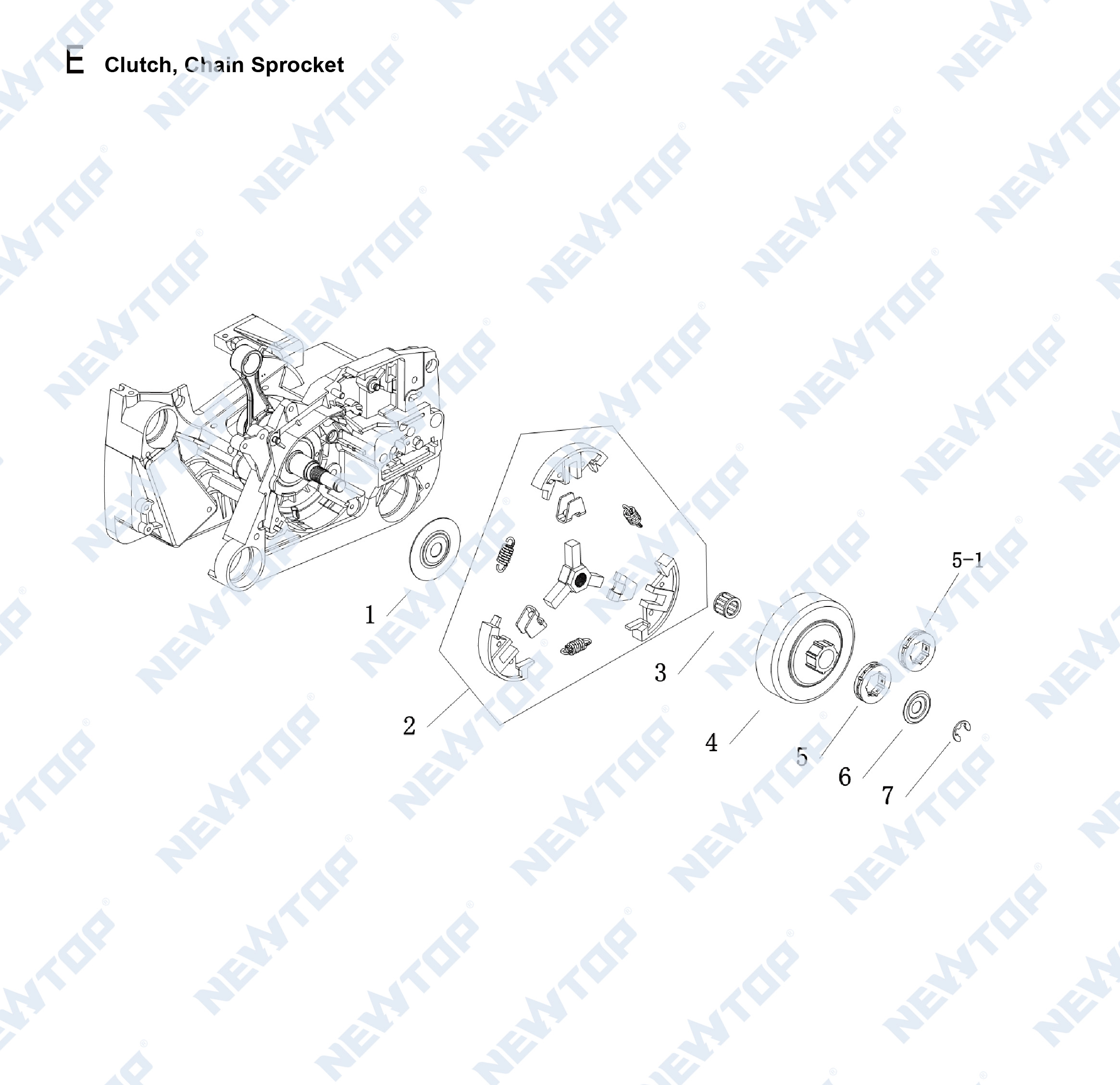 | E5-1 | Sprocket | M7 | Throttle Rod |