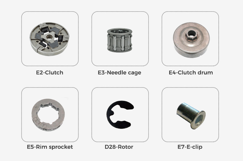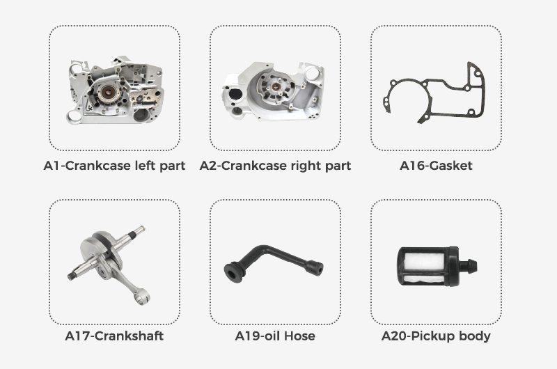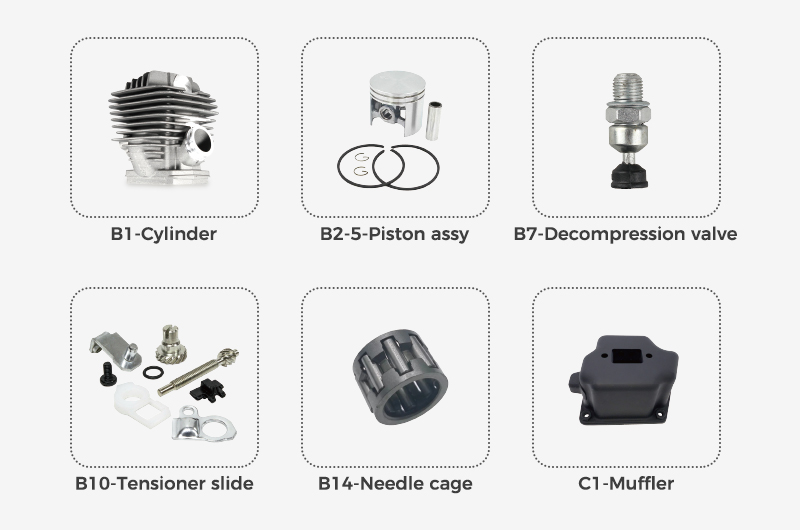 Paired with a Walbro-process carburetor, the system maintains excellent fuel efficiency and throttle response. The German-alloy saw chain and hardened steel guide bar ensure superior cutting speed and durability—making this parts set a long-lasting and cost-effective replacement solution for professional forestry, construction, and agricultural applications.