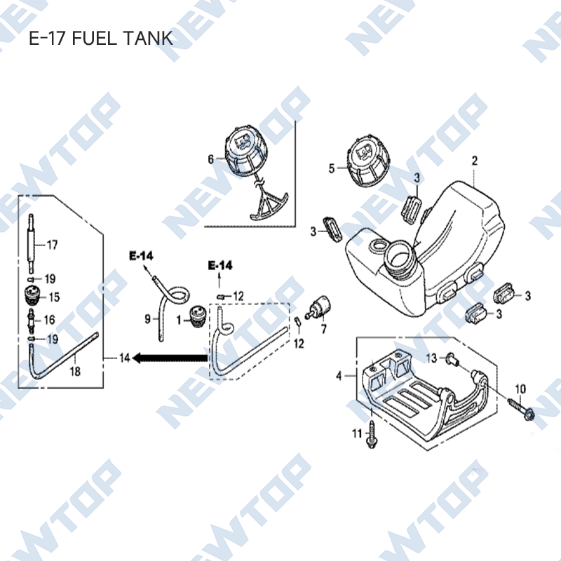 6 BOLT, SOCKET, 5x16 14 GROMMET ASSY., FUEL TANK