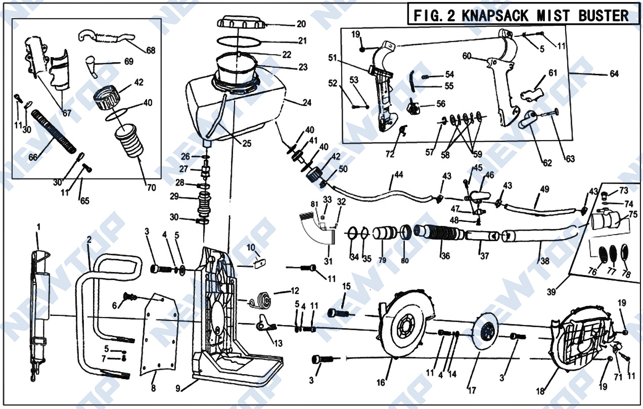 The NEWTOP NTS420 Sprayer Parts Set provides all essential replacements to restore or upgrade your mist duster. It includes engine assemblies such as crankshafts, pistons, mufflers, cylinders, spark plugs, and stators, alongside sprayer system parts like carburetors, fuel tanks, belts, impellers, hoses, and lever assemblies. Each component undergoes rigorous inspection to ensure precise fitment and reliable performance.