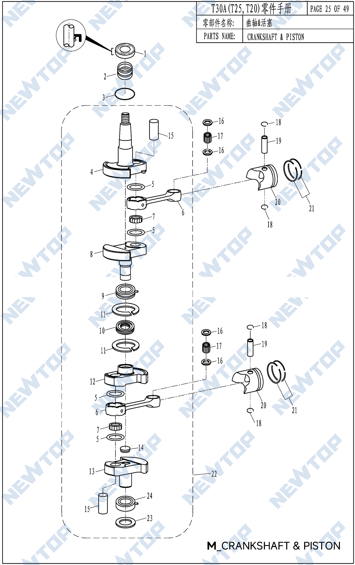 The NEWTOP T30 Outboard Motor Parts Set is engineered for outboard engine users who need components capable of maintaining dependable performance in varying water conditions. From crankshaft assemblies to cylinder-related parts, each item is produced with stable machining and reliable material selection to ensure long-term operation.