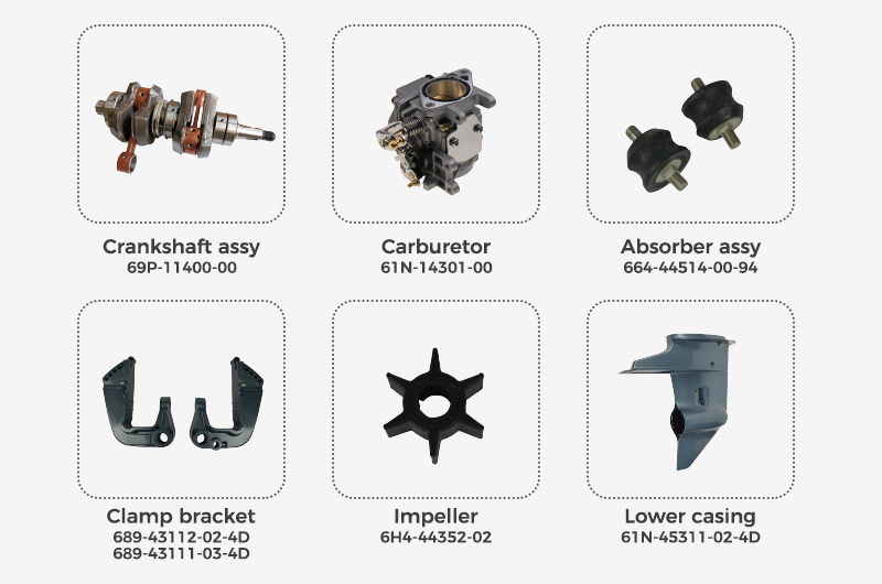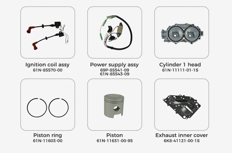 The piston, ring, crank mechanism, and gear components work together to keep the motor running smoothly, helping maintain consistent thrust and reliable load handling. CDI ignition parts support efficient starting, while the corrosion-resistant construction of key assemblies helps reduce wear caused by frequent marine exposure.